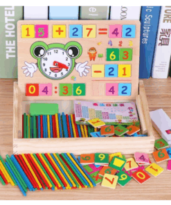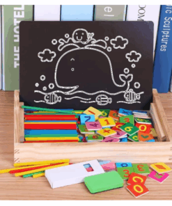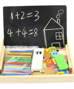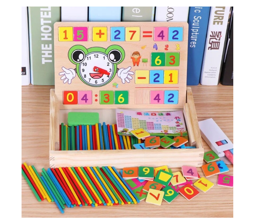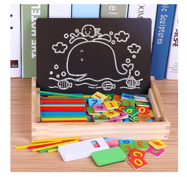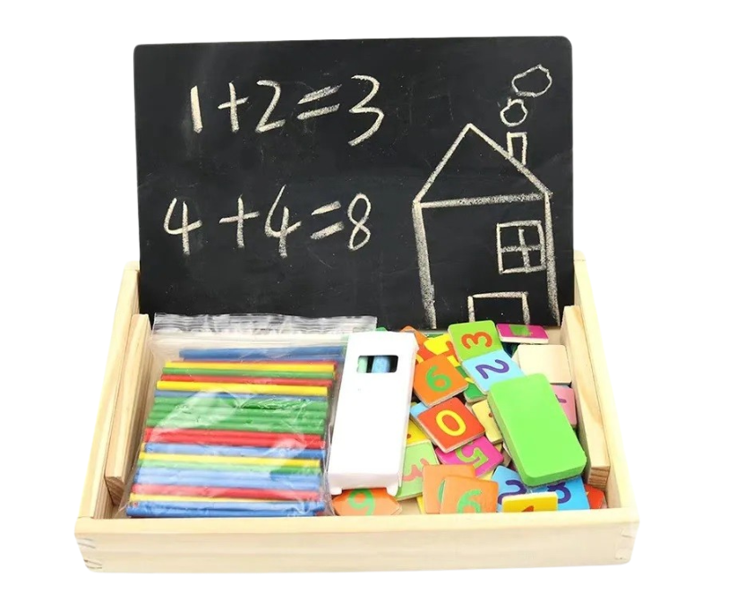 Tablă educativă multifuncțională din lemn, ideală pentru copii de la 3 ani în sus, ce îmbină învățarea matematicii de bază cu activități creative de desen și scriere. Este un instrument educativ conceput conform principiilor Montessori, care stimulează dezvoltarea cognitivă, creativitatea și gândirea logică a celor mici.