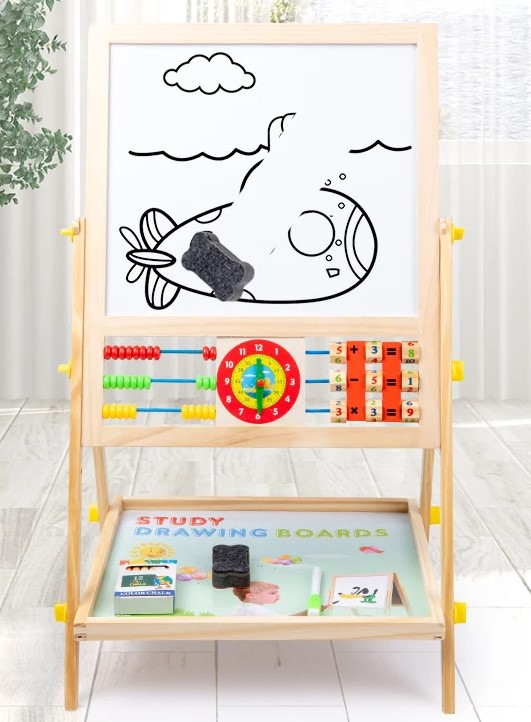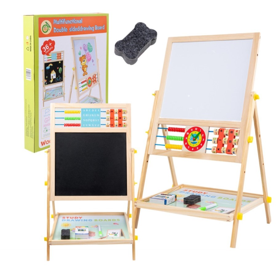 Această tablă magnetică din lemn, cu două suprafețe de scris și desenat, este un instrument excelent pentru dezvoltarea creativității și a abilităților educaționale ale copiilor. Cu un design tip șevalet și accesorii incluse, tabla este perfectă pentru învățarea interactivă, desen, scriere și jocuri magnetice.