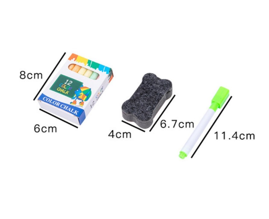 ✔ Accesorii incluse: Setul conține un marker, un burețel pentru șters și o cutie de cretă colorată, pentru a putea începe distracția imediat!