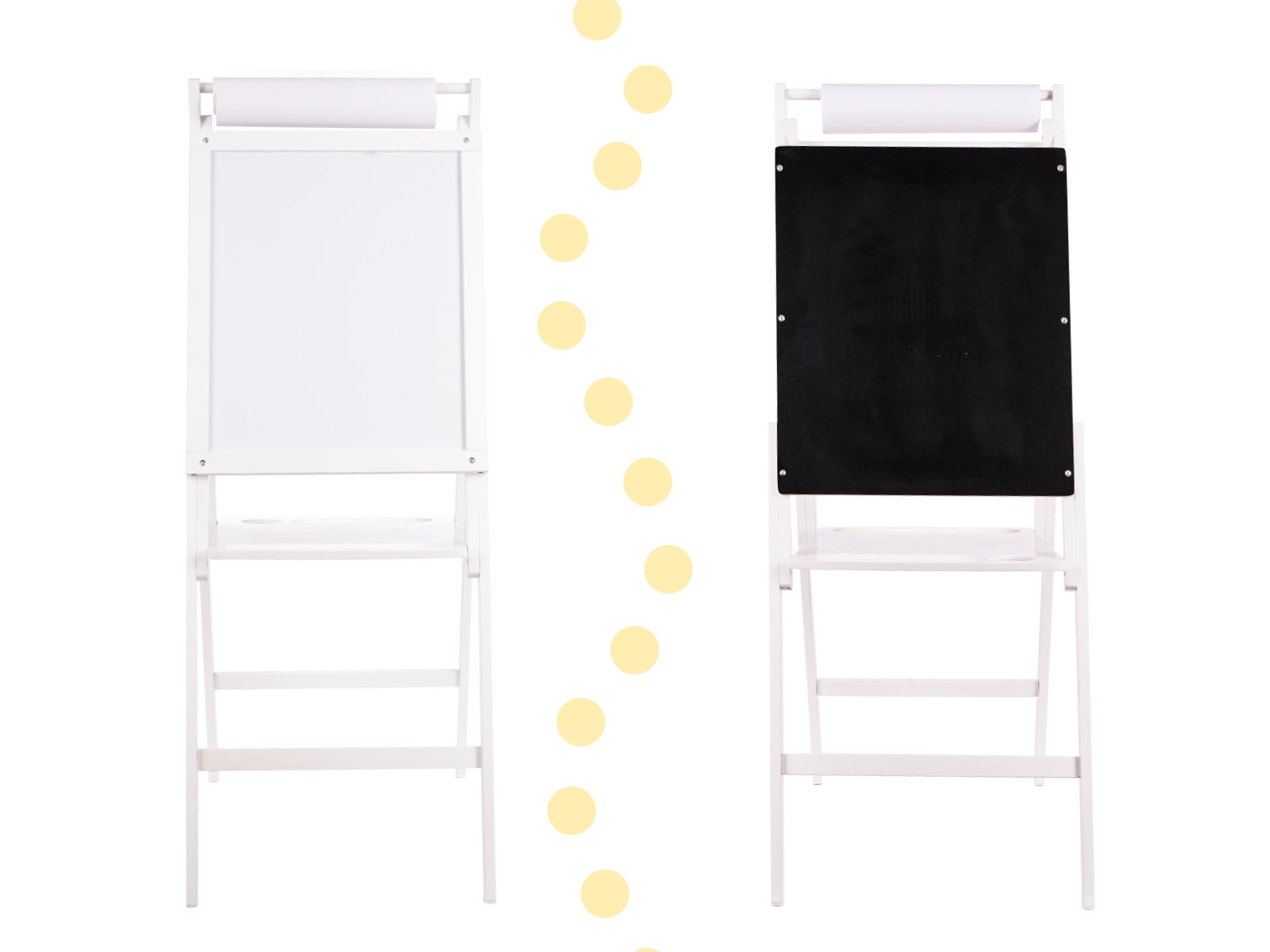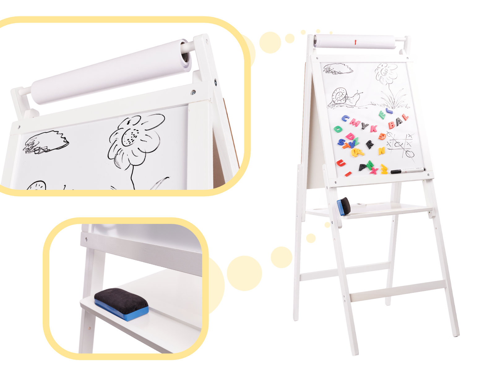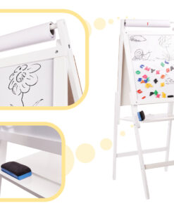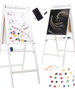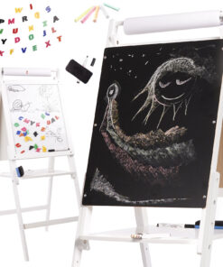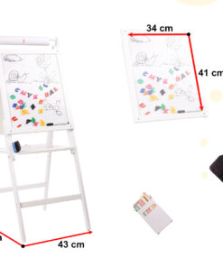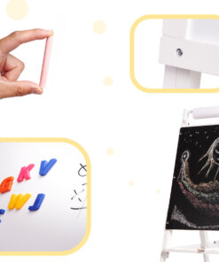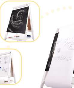 Tabla de scris si desenat cu 2 suprafete completeaza excelent atat camera de joaca a micutilor artisti, dar vine si ca un suport excelent, ca si material didactic, in salile de clasa.