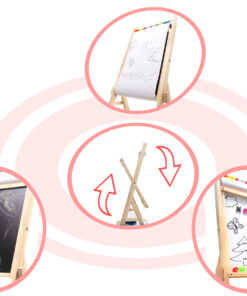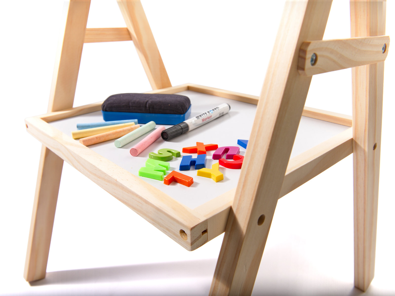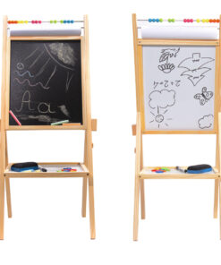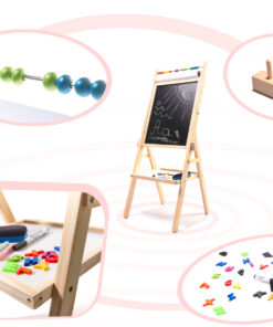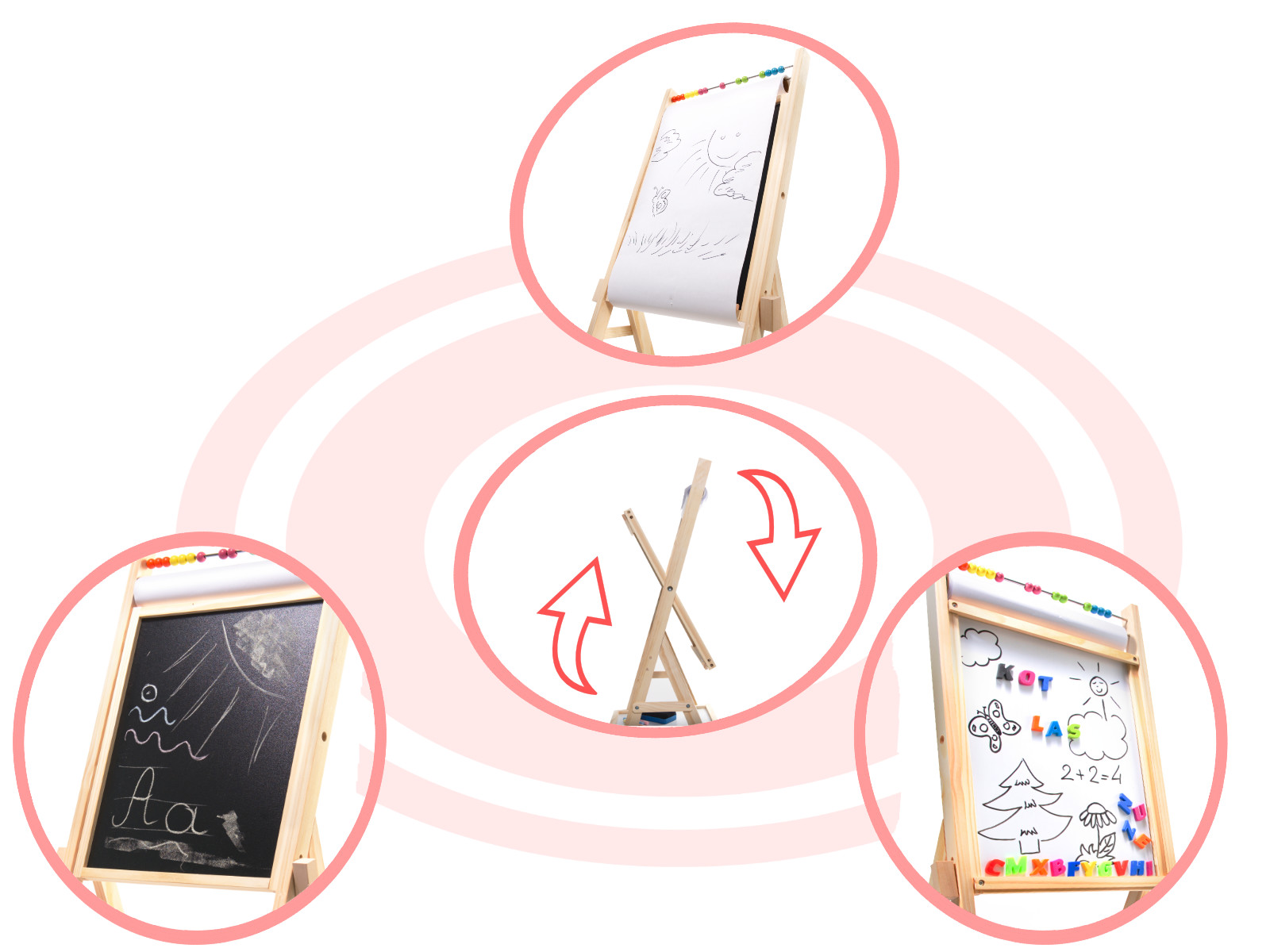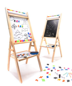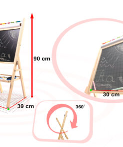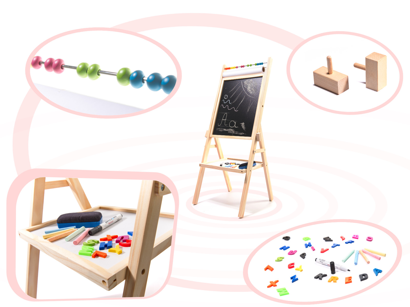 Tabla de scris si desenat cu 2 suprafete completeaza excelent atat camera de joaca a micutilor artisti, dar vine si ca un suport excelent, ca si material didactic, in salile de clasa.