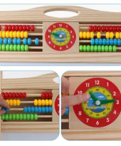 Tabla Sevalet are un abac cu margele colorate si ceas analogic.