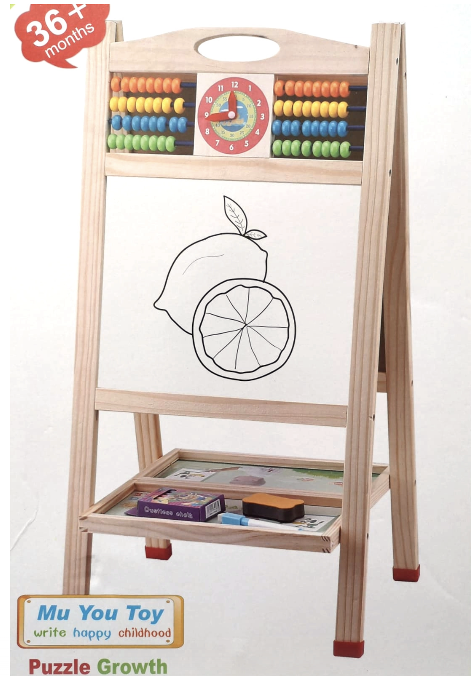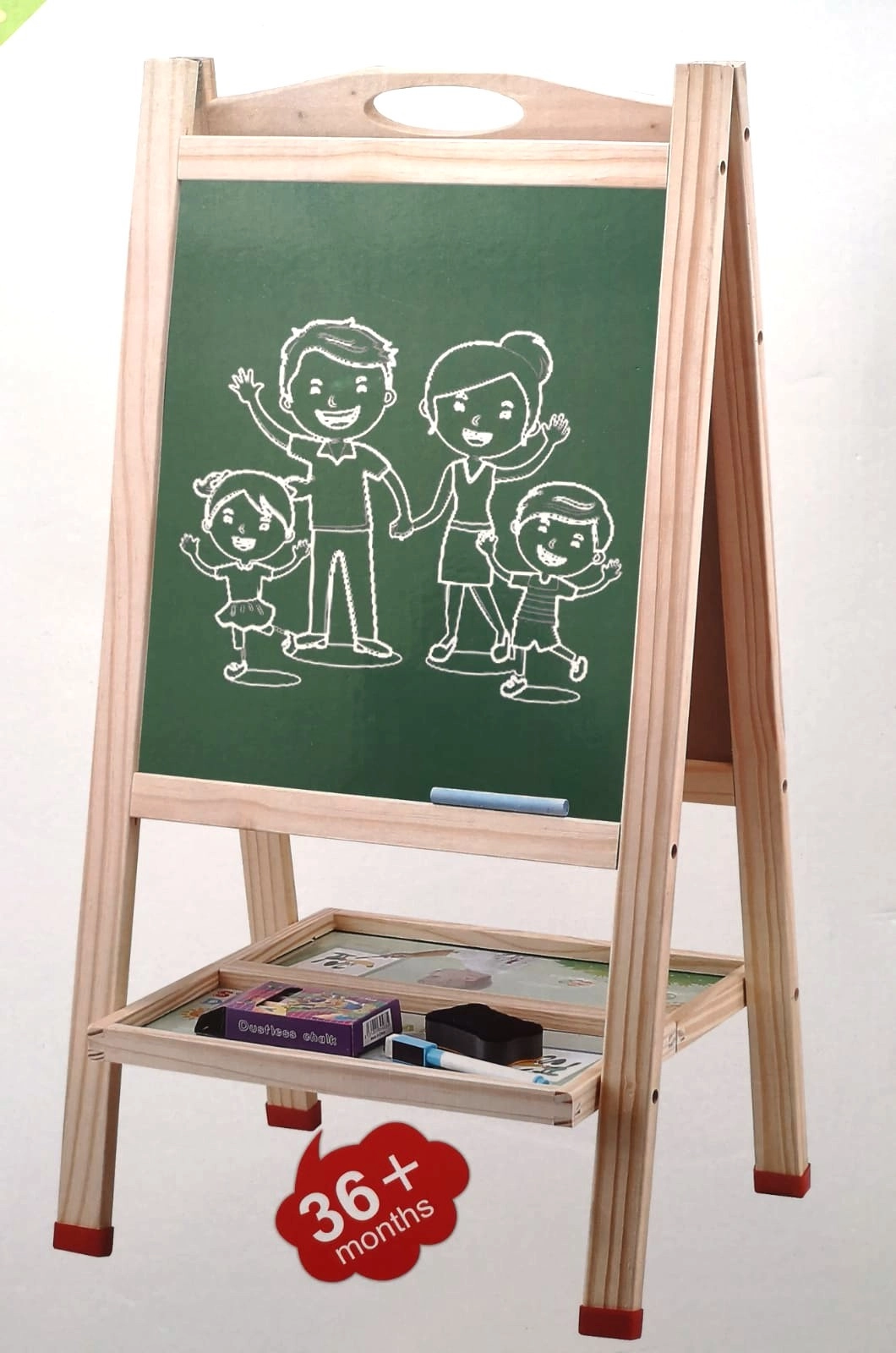 Tabla de scris si desenat cu 2 suprafete completeaza excelent atat camera de joaca a micutilor artisti, dar vine si ca un suport excelent, ca si material didactic, in salile de clasa.