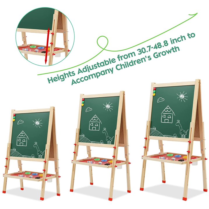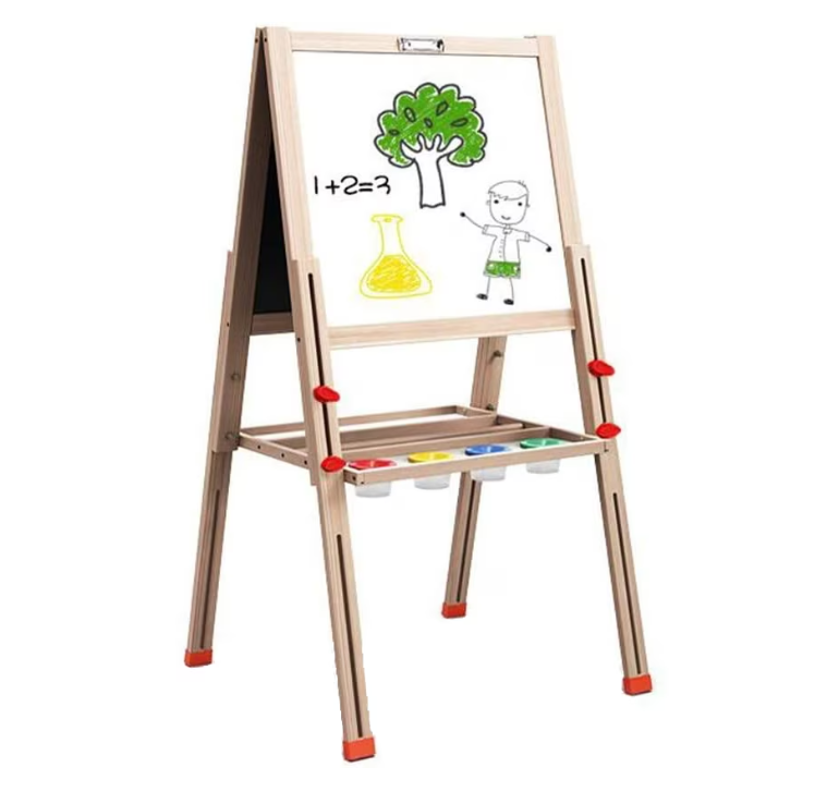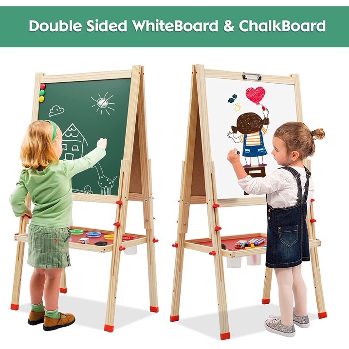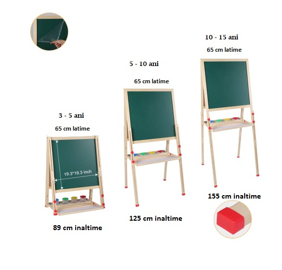 Tabla reglabila de scris si desenat cu 2 suprafete completeaza excelent atat camera de joaca a micutilor artisti, dar vine si ca un suport excelent, ca si material didactic, in salile de clasa.