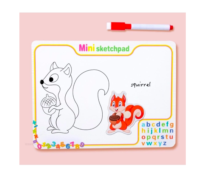 - Tabliță de scris și desenat: Pe verso, copiii pot desena și exersa scrisul pe o suprafață albă reutilizabilă, utilizând markerul inclus.