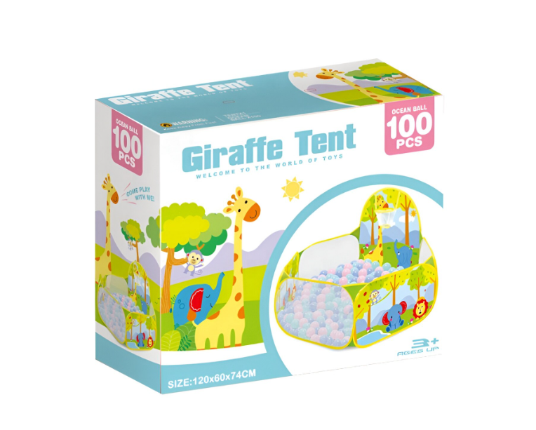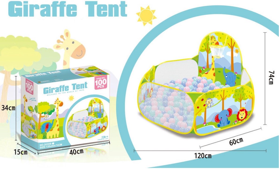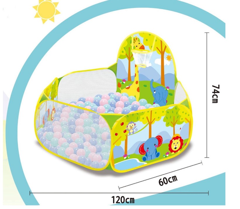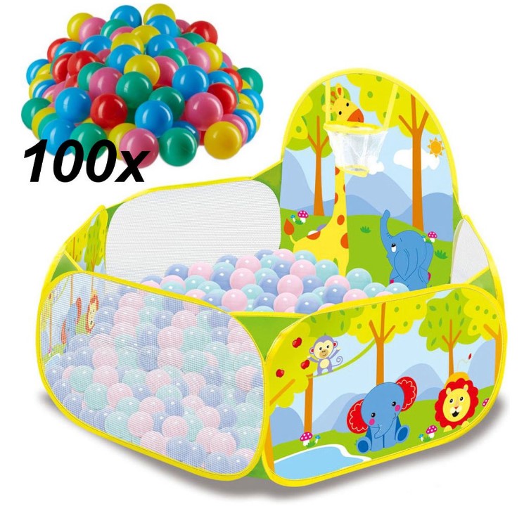Tarc de joaca pentru copii,120 cm x 74 cm x 60 cm si 100 bile colorate, Safari