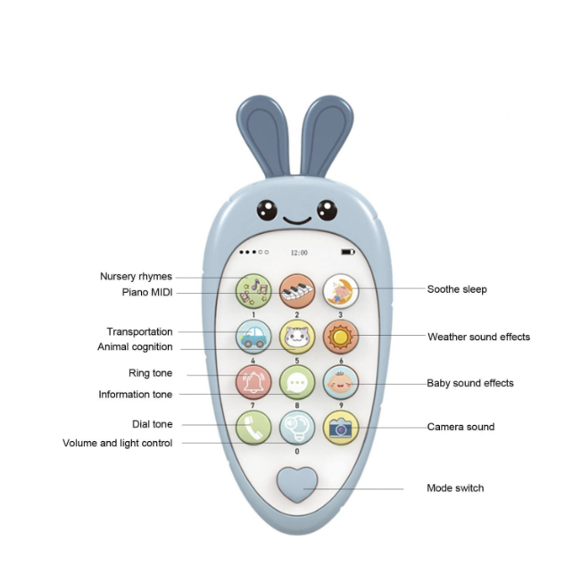 Ofera-i copilului tau propriul telefon complet sigur. Dragutul telefon in forma de morcov va distrage cu siguranta copilul dumneavoastra de la un telefon mobil adevarat si ii va oferi satisfactia de a avea propriul dispozitiv.