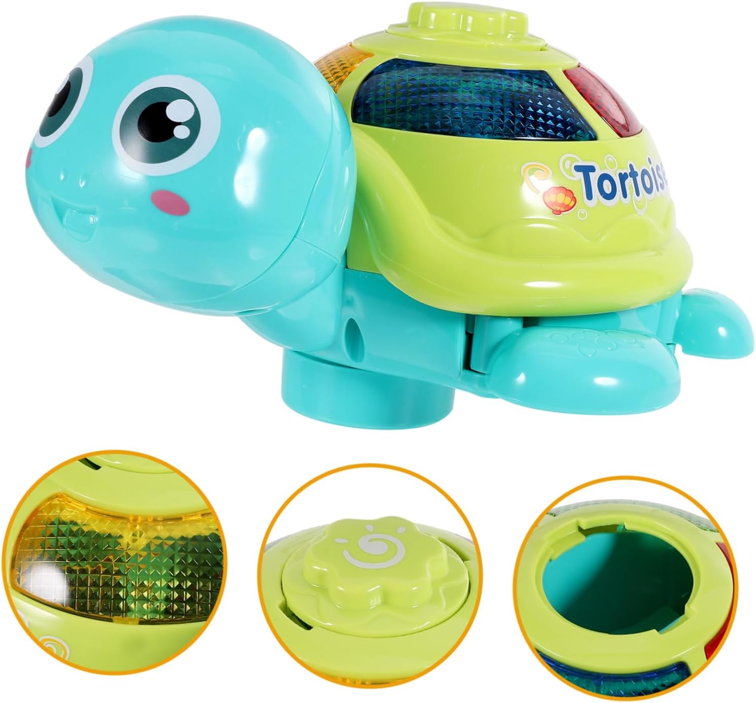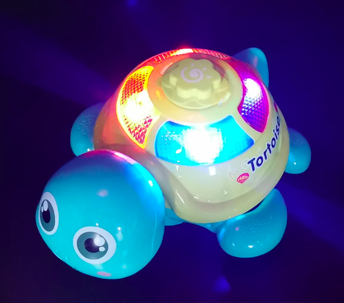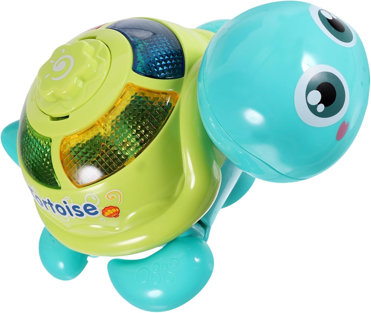 - Mișcare interactivă: Testoasa are roți care îi permit să se deplaseze înainte și înapoi, atrăgând copilul să o urmărească.