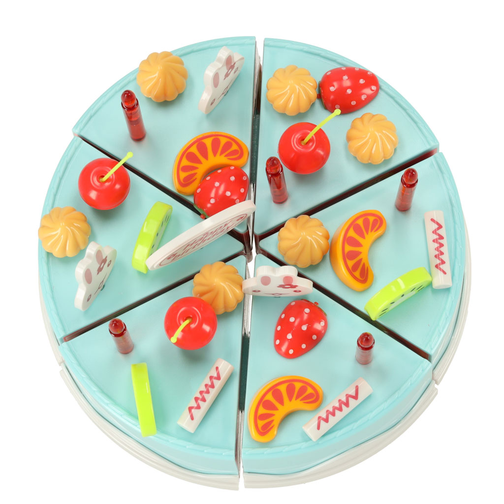 Tortul de aniversare colorat este format din sase piese, care sunt legate intre ele prin banda cu arici. Copiii pot separa cu usurinta (taia) bucati individuale de tort de ziua de nastere folosind un cutit de plastic (inclus).