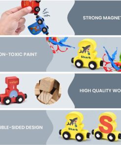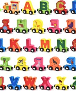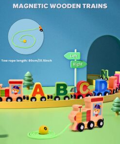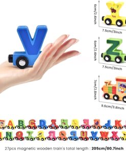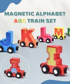Trenulet din lemn cu piese magnetice, 27 piese, 3 ani+, Alfabet