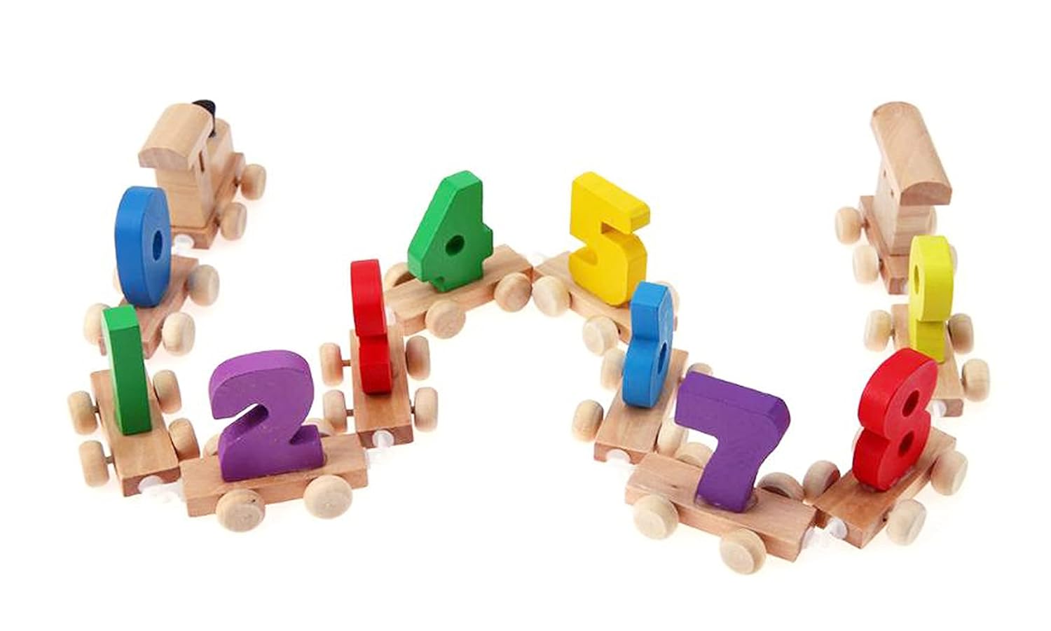 Un trenuleț educativ și colorat care transformă învățarea cifrelor într-o joacă interactivă și creativă! Fiecare vagon din lemn este decorat cu o cifră de la 0 la 9, în culori vii, ajutând copiii să recunoască și să învețe numerele într-un mod vizual și practic. Vagoanele sunt ușor de conectat între ele, formând un trenuleț lung și vesel.