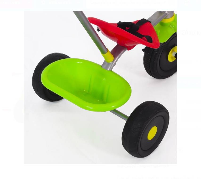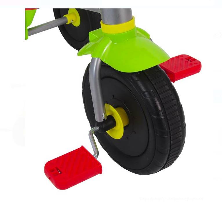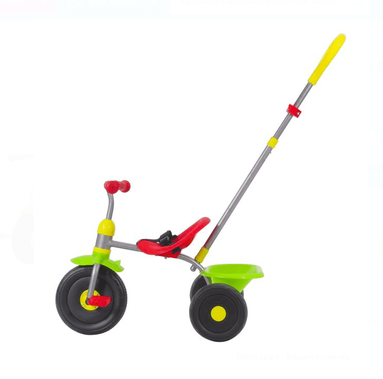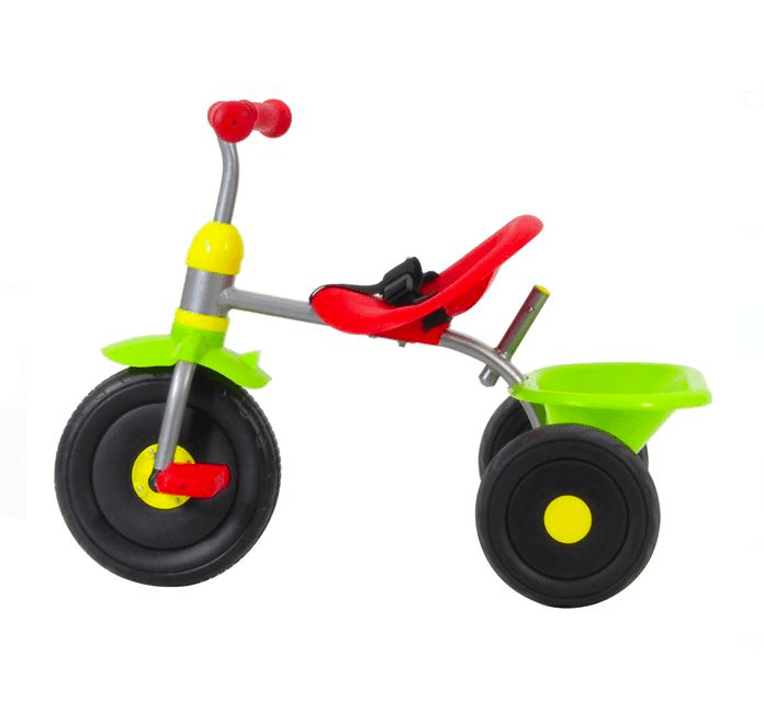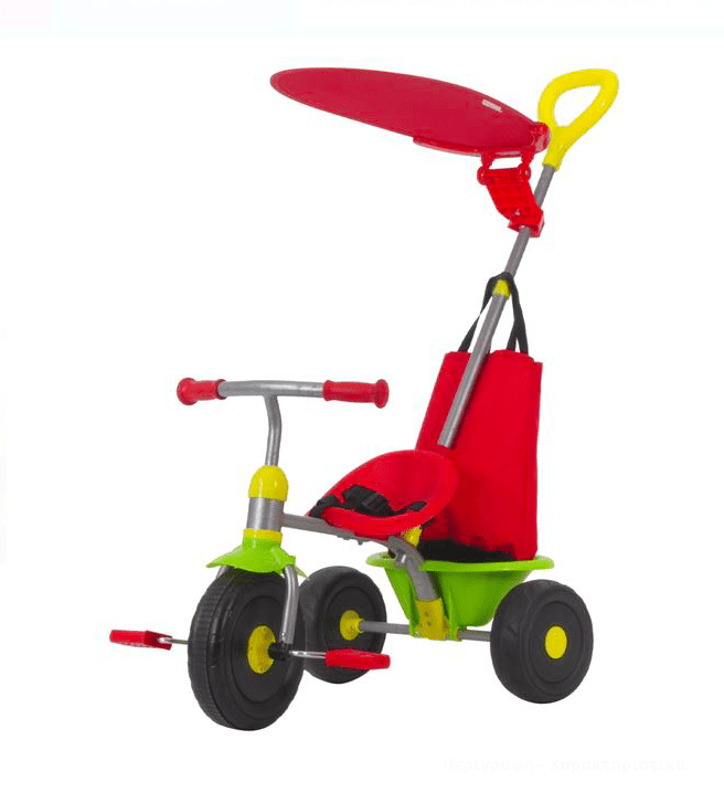 Tricicleta pentru bebelusi de culoare rosu-verde care se adapteaza in functie de varsta copilului. Cu umbrelă detașabilă și mâner detașabil pentru asistență din partea părintelui, pedale ușoare, geantă care acționează ca spațiu de depozitare, centuri de siguranță în 3 puncte, coș, pedale largi și roți de mare rezistență din material EVA.