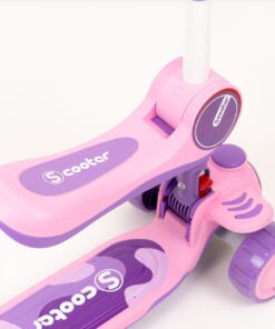 Când copilul este pregătit, scăunelul se poate plia și transforma trotineta într-una clasică, în picioare. Mersul cu trotineta ajută la dezvoltarea musculaturii, coordonării și încrederii în mișcare.