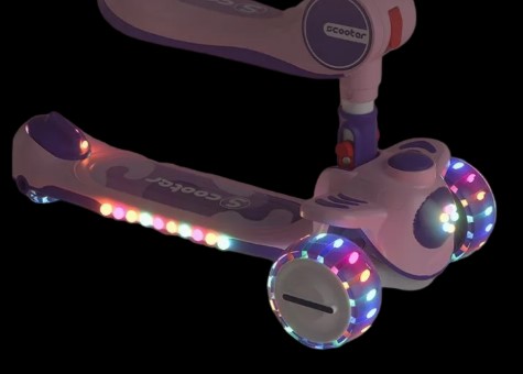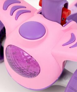 Oferă o experiență interactivă și distractivă. Lumina roților LED se aprinde automat la rulare, iar melodiile pot fi activate din buton pentru a încuraja plimbările active.