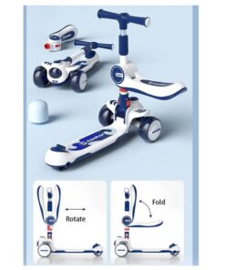 Trotineta 2 in 1, pliabila cu 3 roti si lumini si muzica, 2 ani+, Albastru