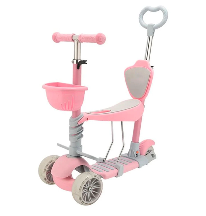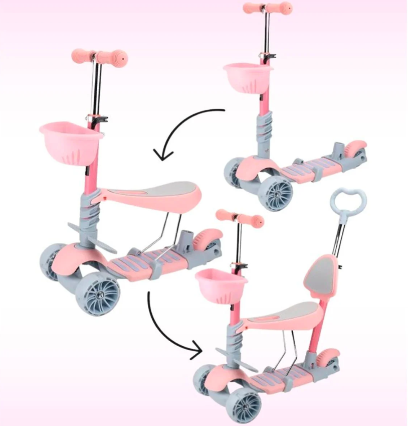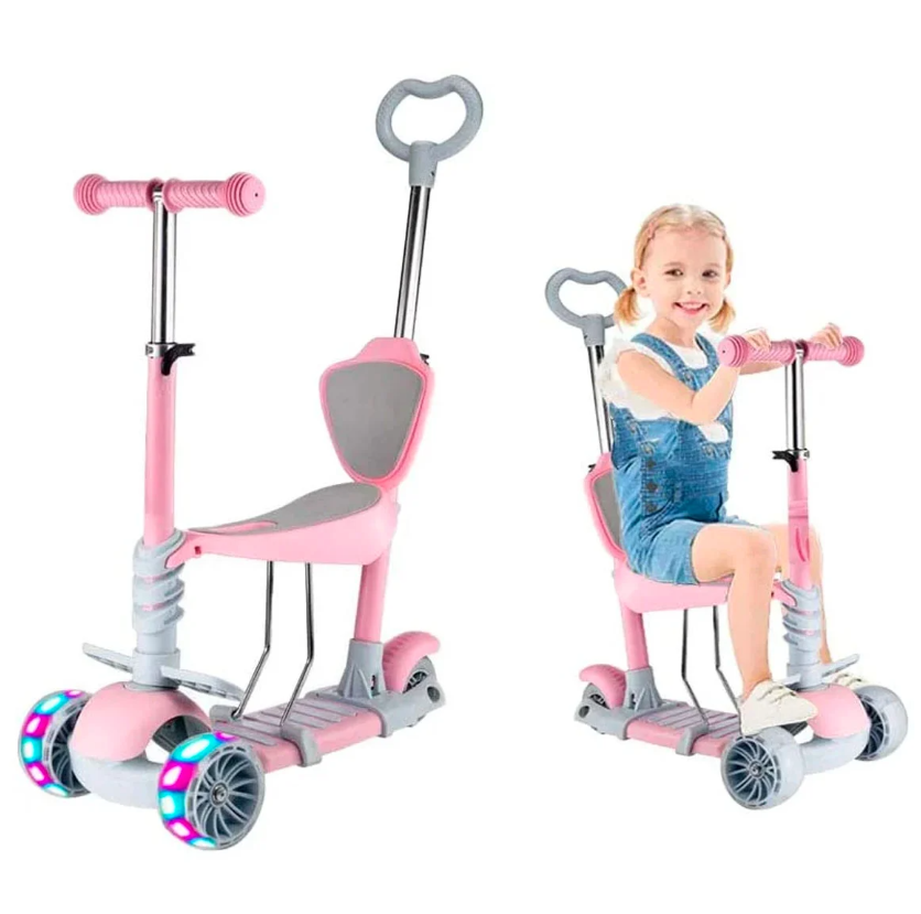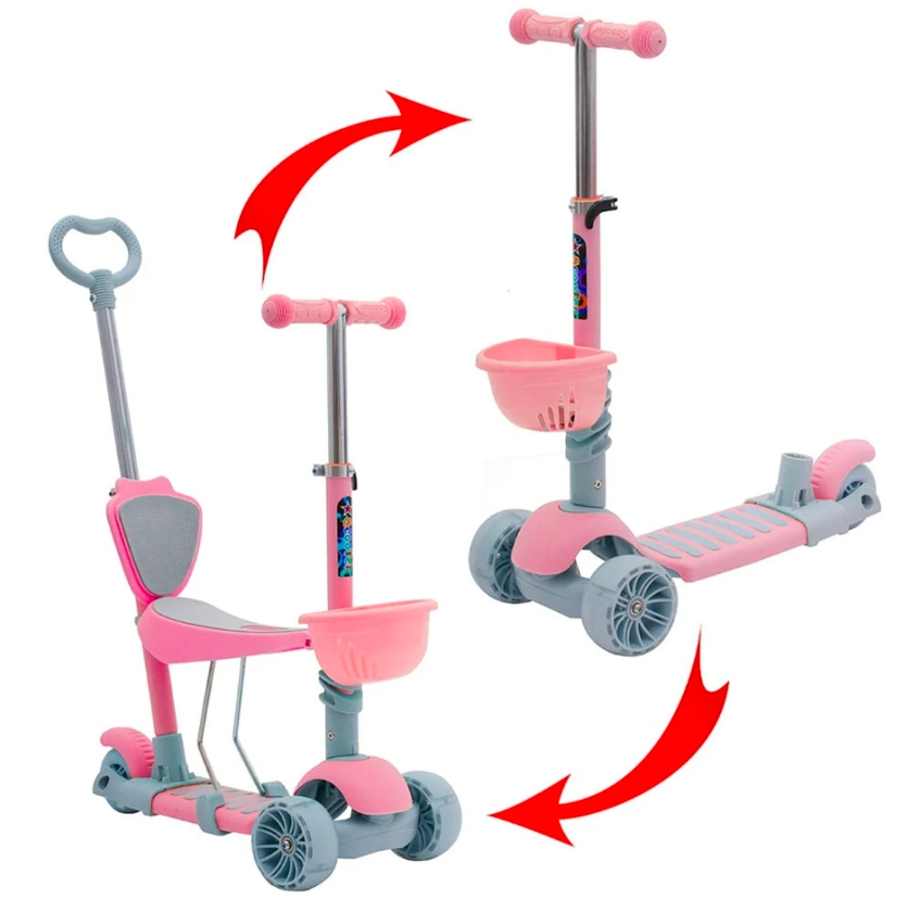 Trotineta multifunctionala, 5 in 1 cu 3 roti si scaunel, ROZ.