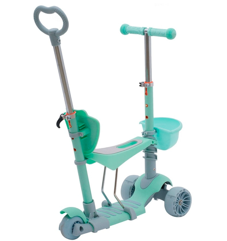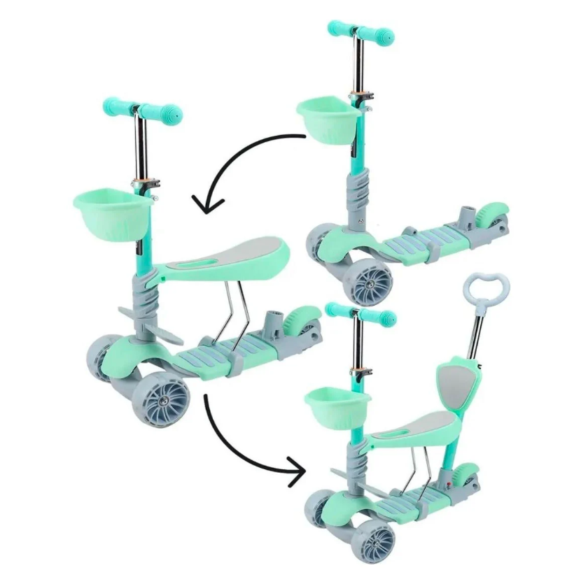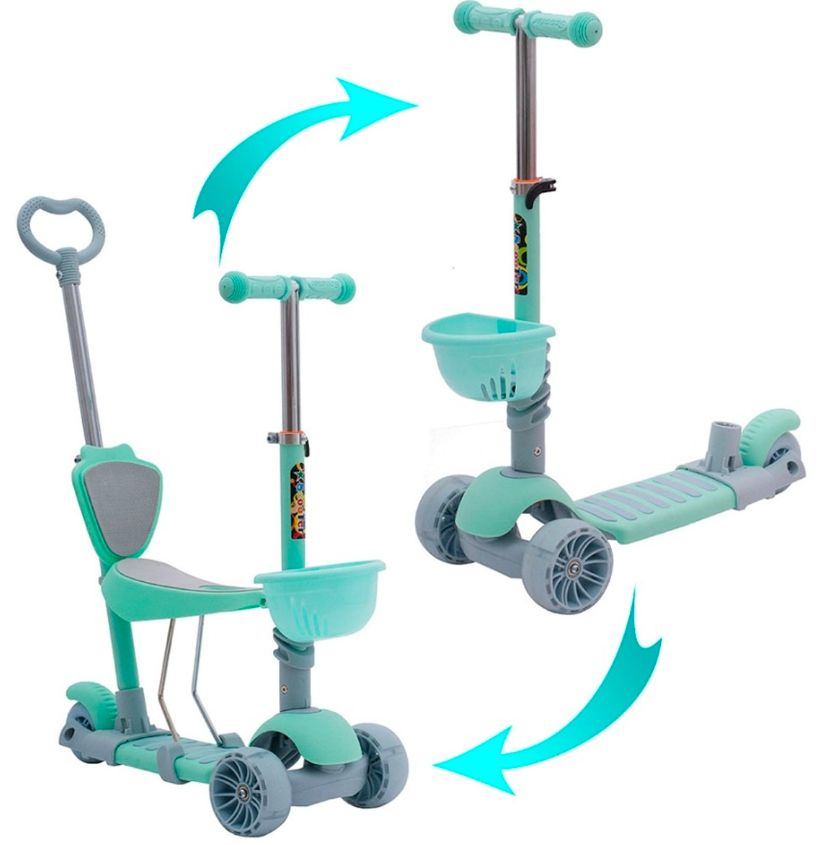 Trotineta multifunctionala, 5 in 1 cu 3 roti si scaunel, albastru.