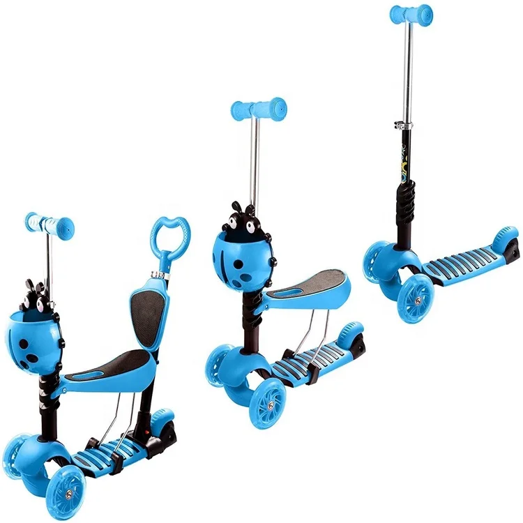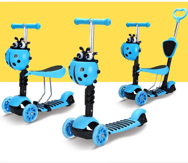 1️⃣ Trotinetă cu scaun și mâner de împins – funcționează ca o tricicletă modernă pentru copii mici (2-3 ani), ideală pentru plimbări asistate de părinți.