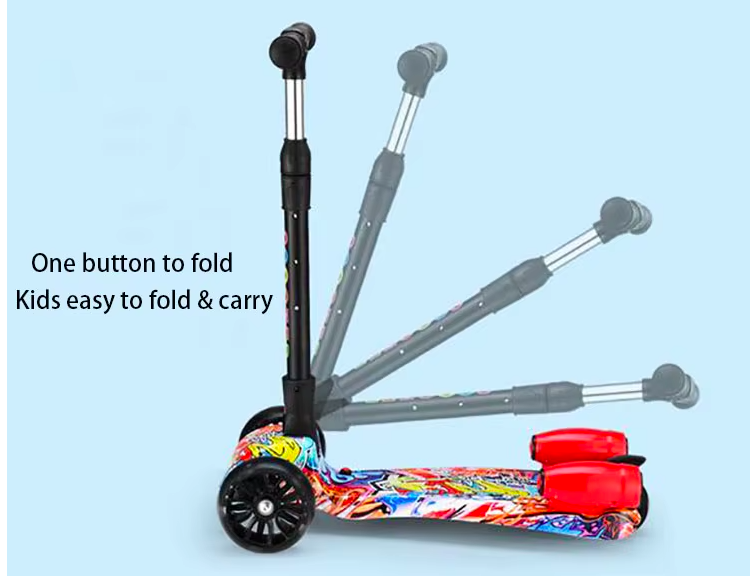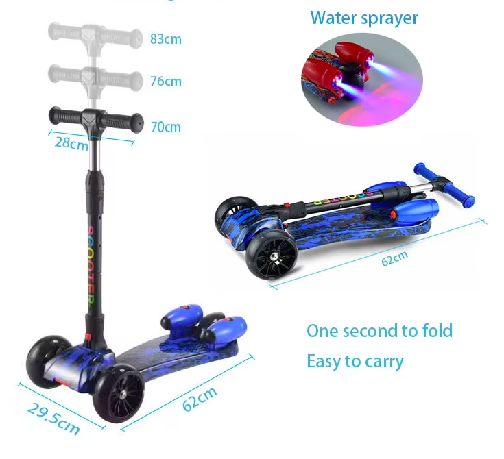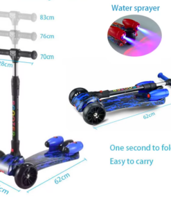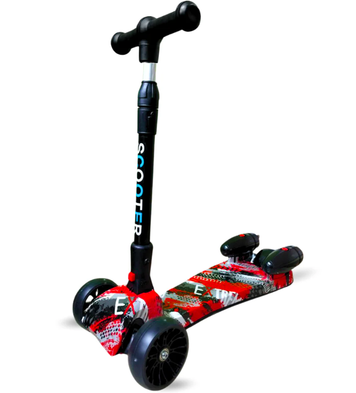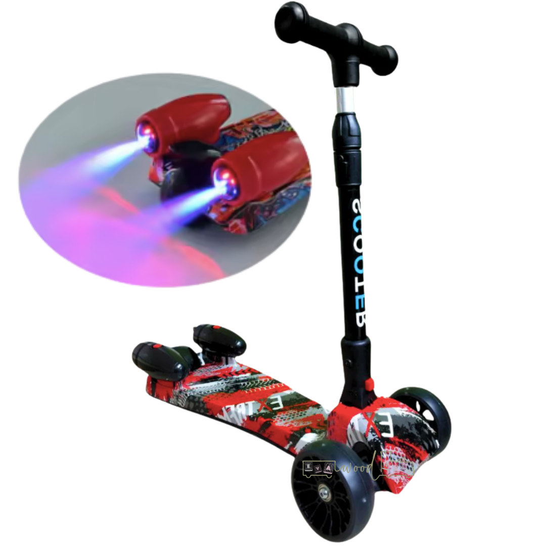 Trotinetă pentru copii cu 3 roți, ajustabilă, pliabila cu lumini LED, sunete si abur, efect de fum, Rosu