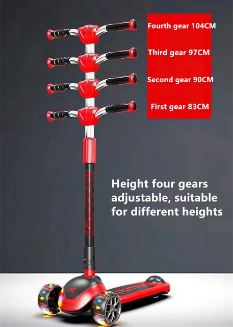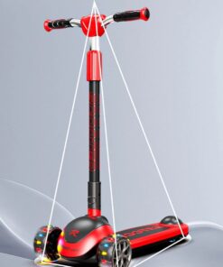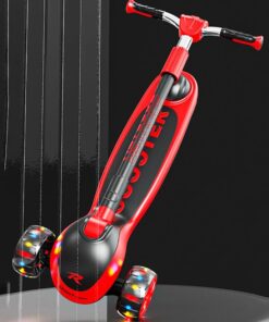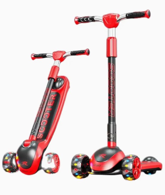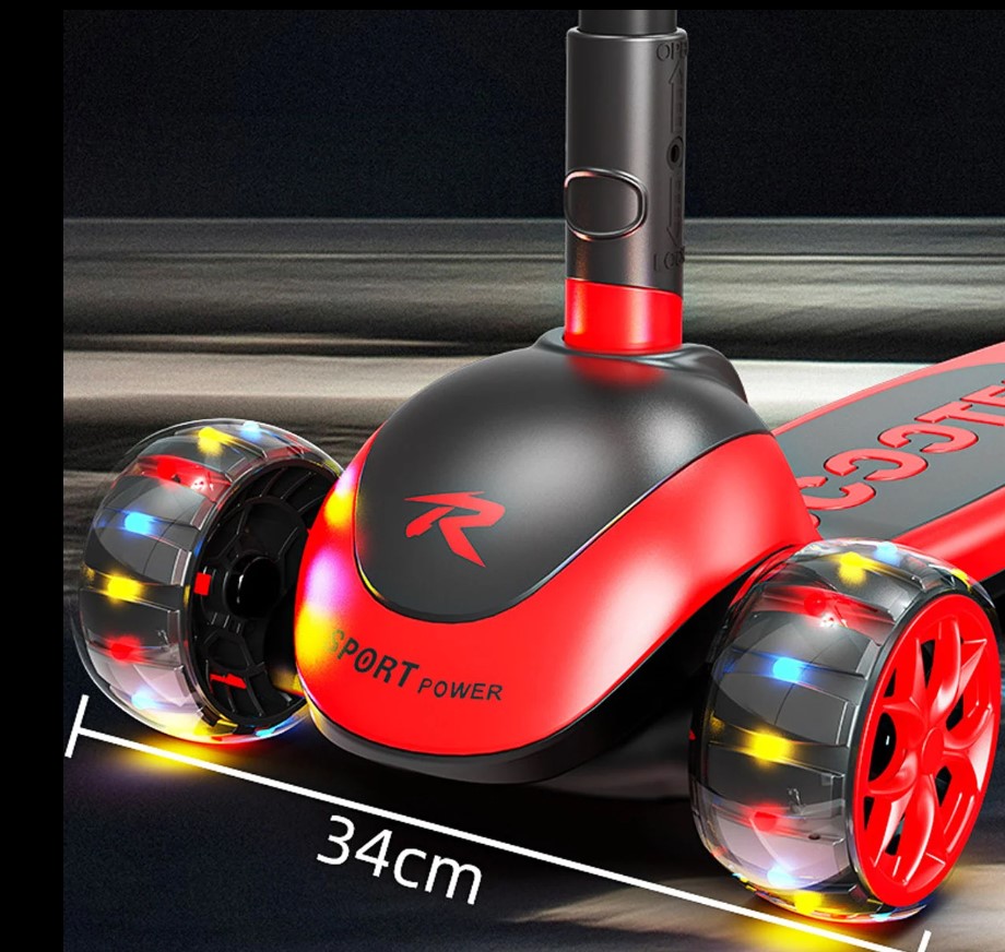 Trotinetă pliabilă cu 3 roți, sunete și lumini, pentru copii 6 ani+, culoare roșu – model Sport Power