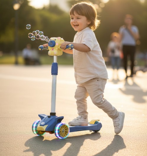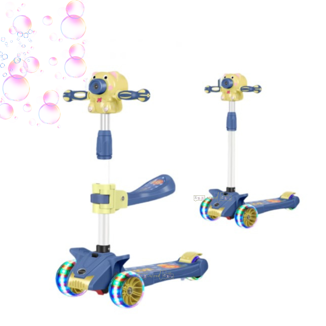 Funcția specială de bule de săpun transformă fiecare ieșire într-un moment spectaculos, fiind un element unic care diferențiază această trotinetă de modelele clasice.