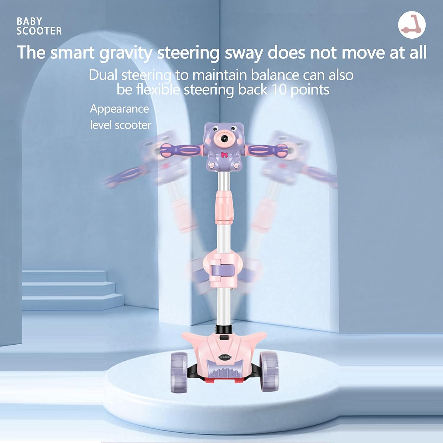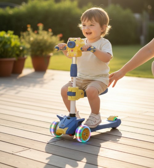 Datorită sistemului cu 3 roți și direcție prin balans (lean-to-steer), trotineta oferă stabilitate excelentă, fiind ideală pentru copiii aflați la început de drum. Luminile LED integrate în roți se activează în timpul mersului, iar funcțiile muzicale adaugă un plus de entuziasm și interactivitate.