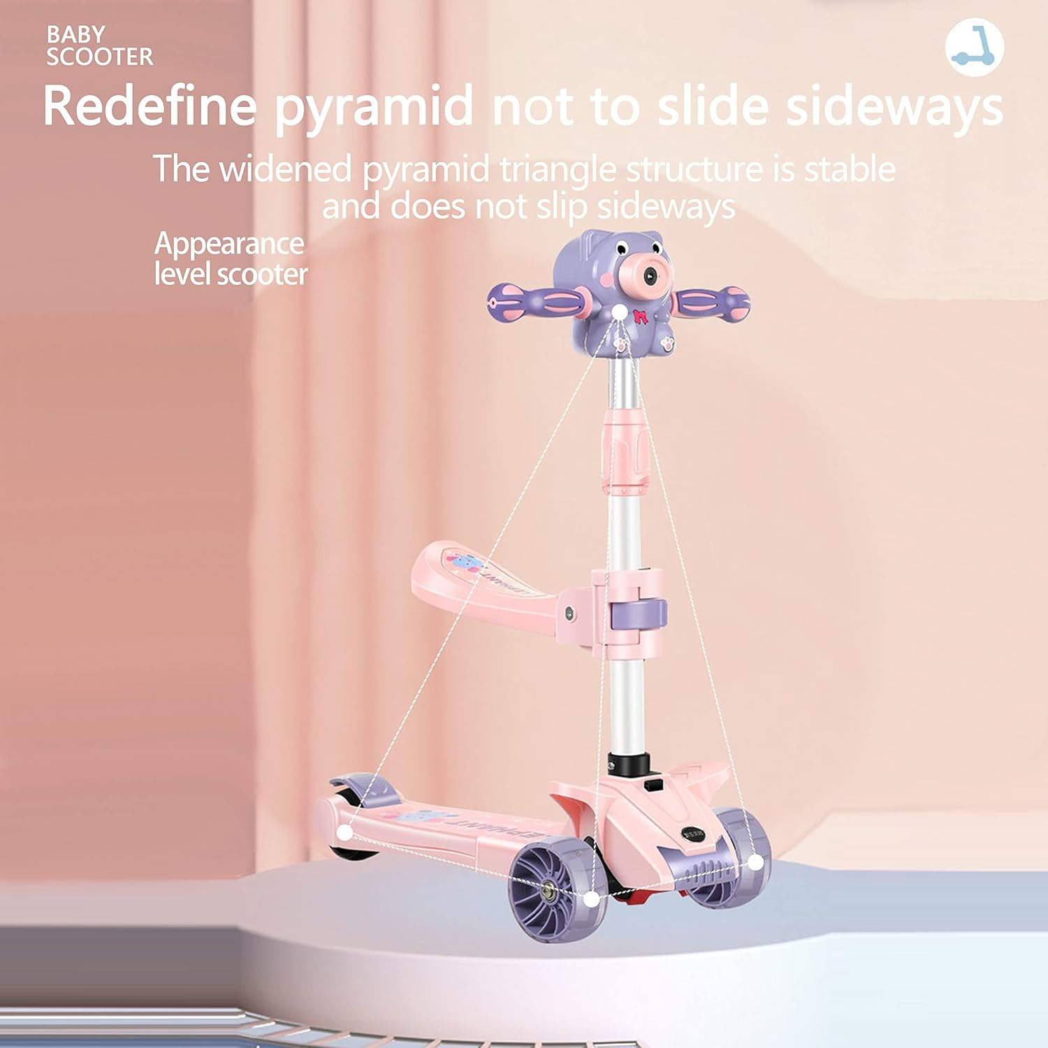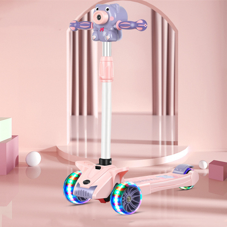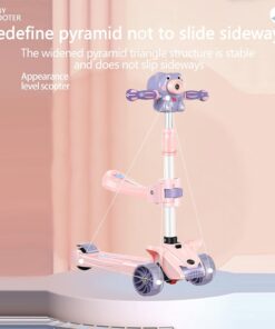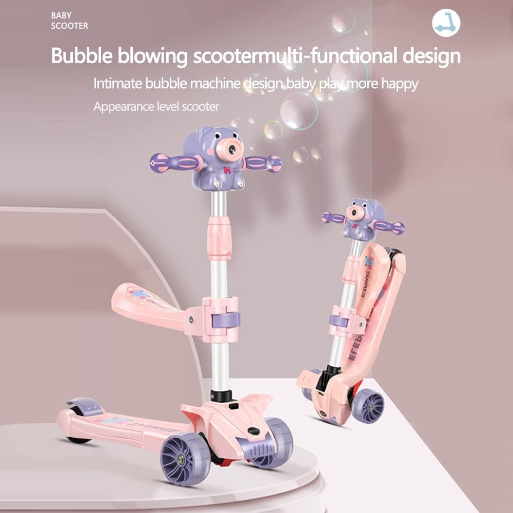 Trotineta pliabilă cuscaunel si 3 roți este concepută pentru a transforma fiecare plimbare într-o experiență magică pentru cei mici. Cu un design atractiv, în nuanțe pastelate de roz și mov, și un adorabil accesoriu în formă de animăluț care produce baloane de săpun, această trotinetă oferă distracție garantată la fiecare utilizare.