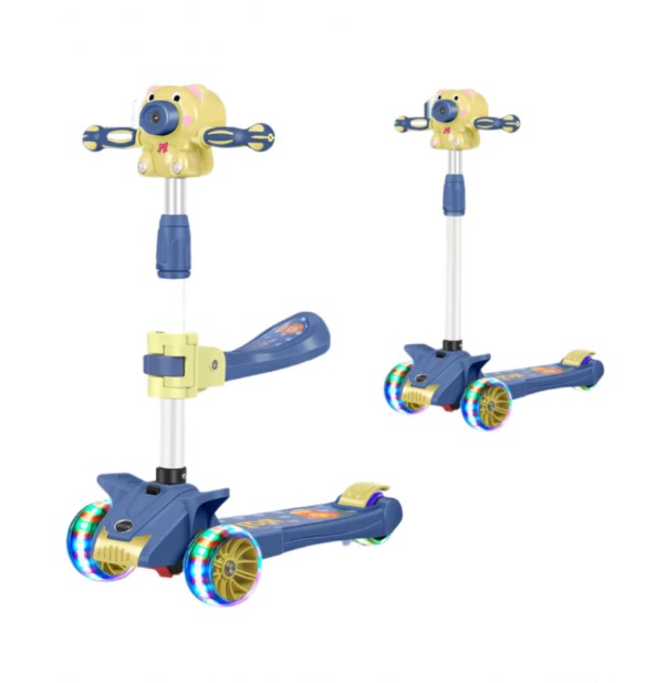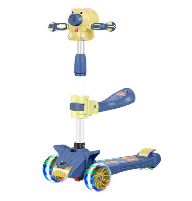 Trotineta pliabila cu scaunel si 3 roti, sunete, lumini si baloane de sapun, Albastru, 2-10 ANI