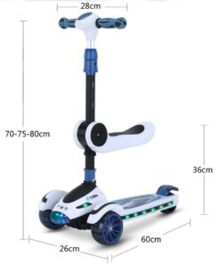 Trotineta pentru copii cu 3 roți, pliabilă și reglabilă pe înălțime, este un vehicul ideal pentru dezvoltarea echilibrului, coordonării și încrederii în mișcare. Prevăzută cu roți cu lumini LED, efecte sonore și sistem stabil cu 3 roți, această trotinetă oferă copiilor o experiență sigură și distractivă în timpul plimbărilor în aer liber.