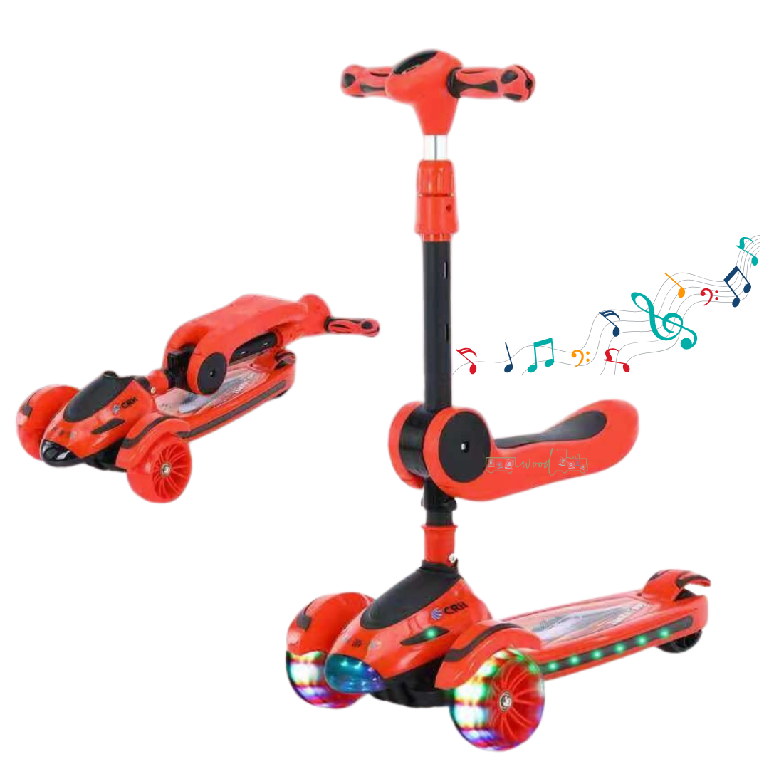 Trotinetă pliabila pentru copii cu scaunel si 3 roți, lumini LED, sunete, 3-10 ani, Rosu