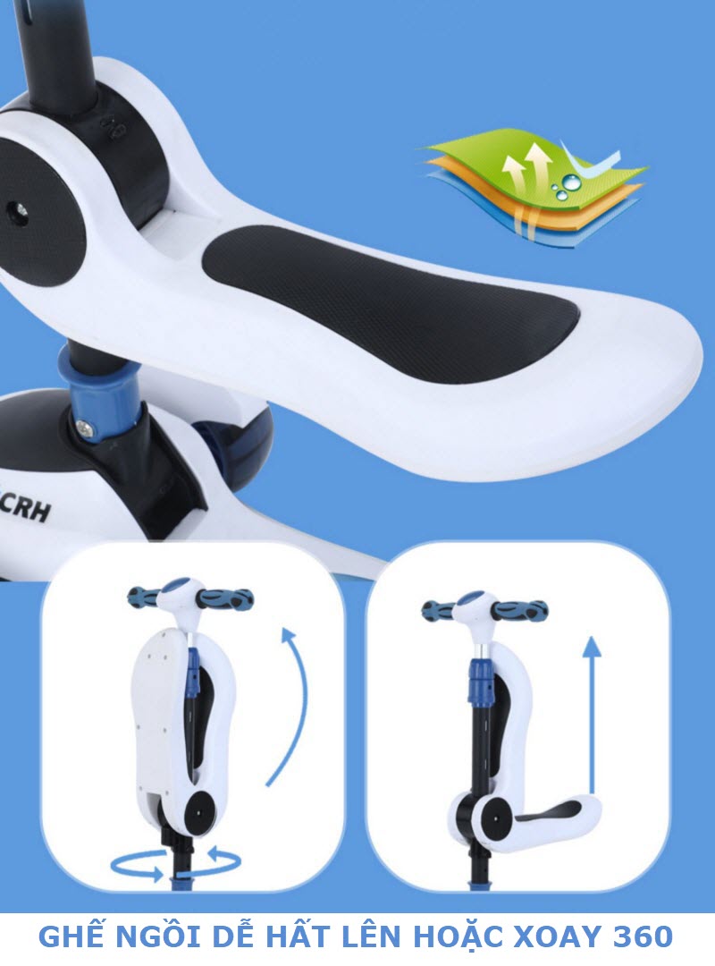Trotineta pentru copii cu 3 roți este concepută pentru a oferi stabilitate, siguranță și distracție, fiind potrivită pentru primii pași în lumea mobilității active. Sistemul cu două roți frontale și o roată spate asigură un echilibru optim, iar mecanismul de direcție bazat pe înclinarea corpului ajută copilul să învețe controlul mișcării într-un mod natural.