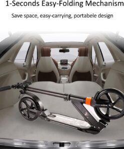 Trotineta neagra din aluminiu cu amortizoare