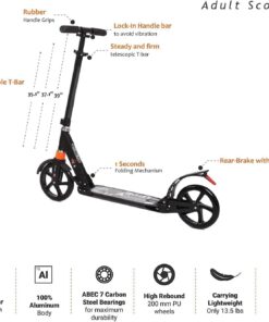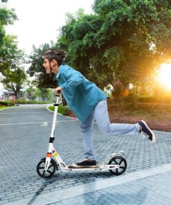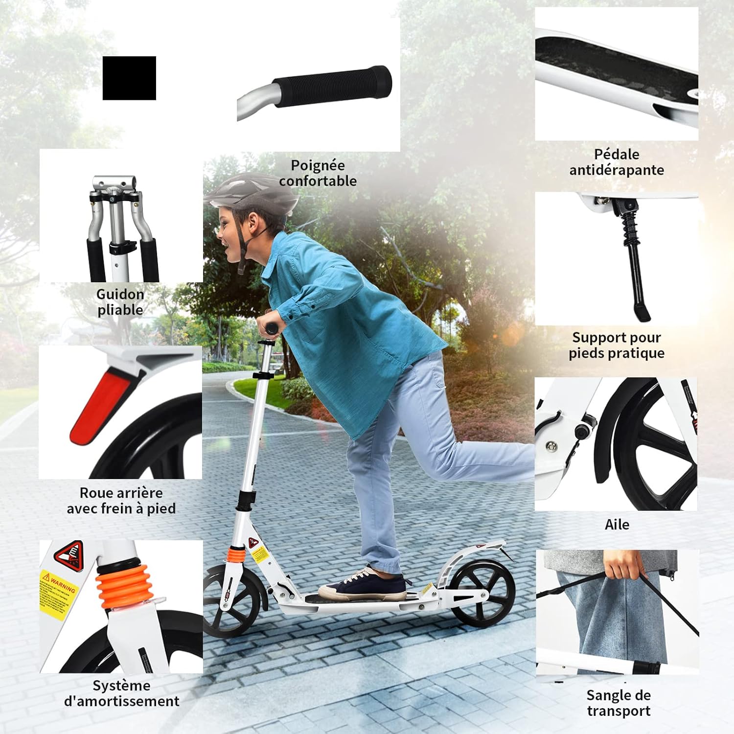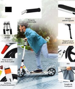 Descoperă trotineta pliabilă și reglabilă, ideală pentru plimbări prin oraș, navetă sau activități recreative. Designul său modern și structura solidă din aluminiu asigură o călătorie confortabilă și sigură pe diverse tipuri de suprafețe.