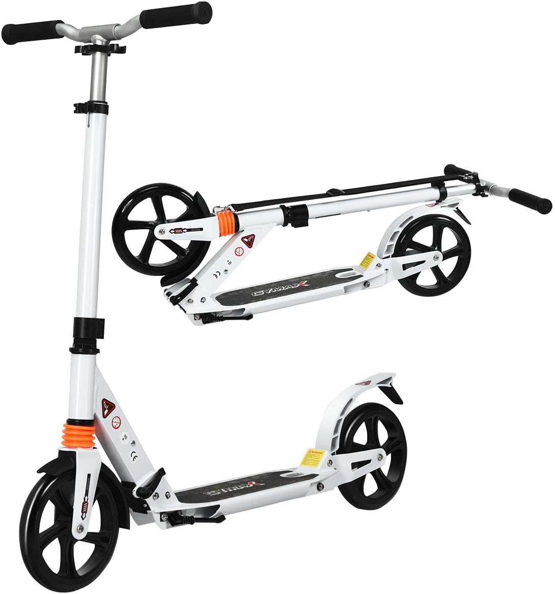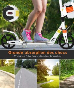 Trotineta pliabila, reglabila cu roti mari din silicon, Alb, 90 cm