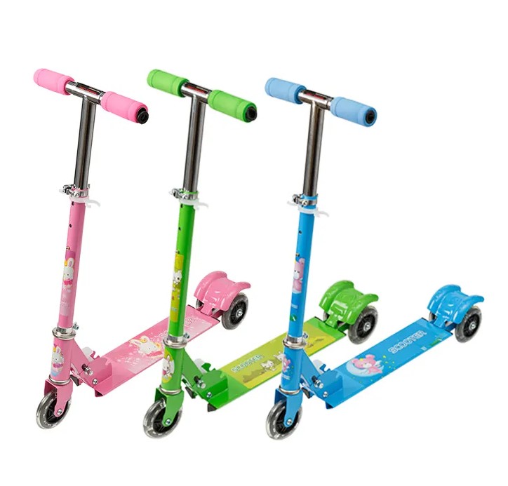 Trotineta, pliabila si reglabila cu 3 roti cu lumini, 3 ani+, VERDE