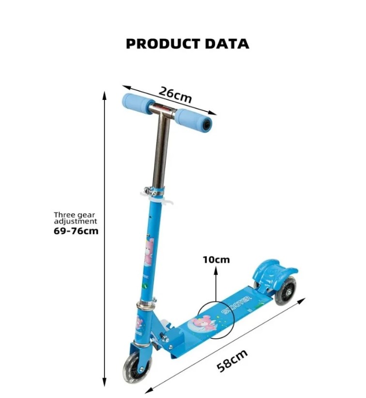 Oferă-i copilului tău momente de distracție și aventură cu trotineta pliabilă și reglabilă cu 3 roți, special concepută pentru cei mici! Designul modern, culorile atractive și funcțiile de siguranță fac din această trotinetă alegerea perfectă pentru copiii de peste 3 ani.