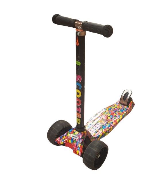 Trotineta reglabila cu roti din silicon cu lumini, multicolor, 3 ani