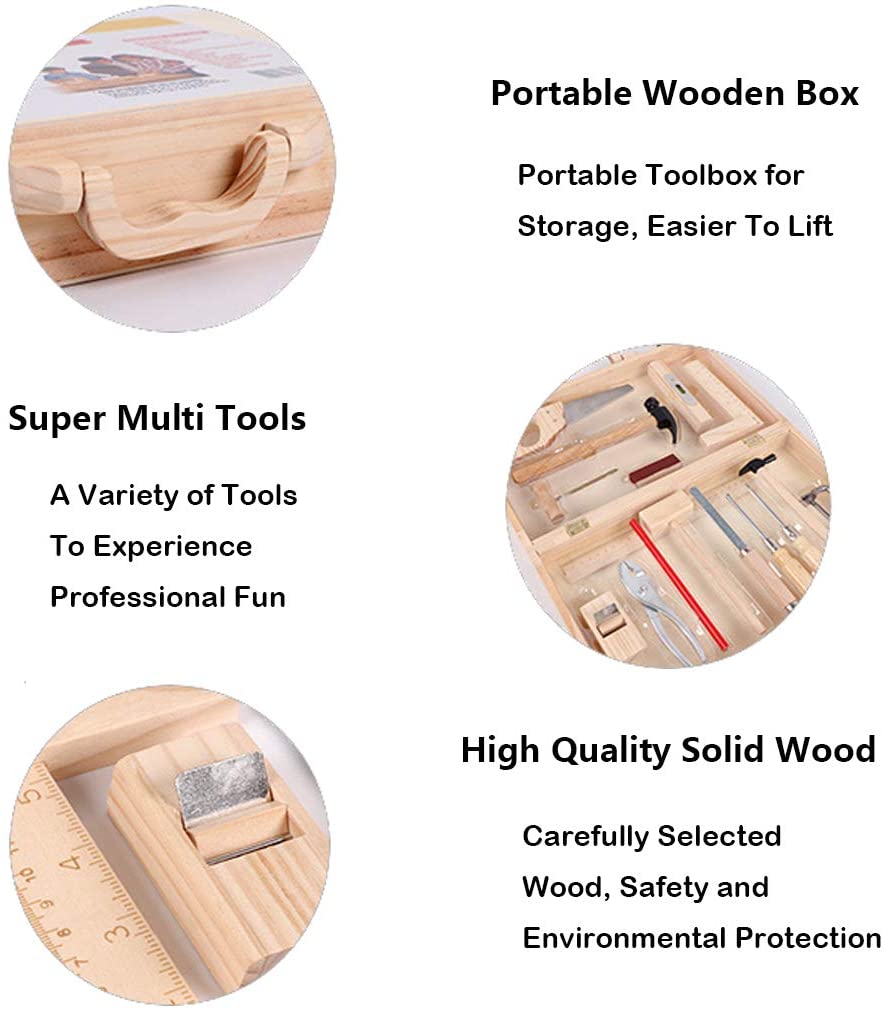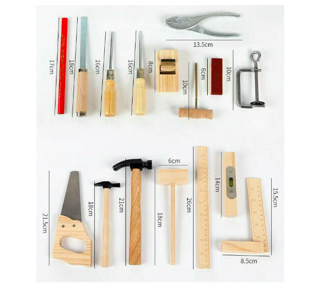 Această trusă de scule din lemn este ideală pentru micii meșteri și iubitorii de activități creative. Special creată pentru a dezvolta abilitățile motrice fine și coordonarea ochi-mână, setul este perfect pentru copiii de la 3 ani în sus, oferindu-le o experiență practică și sigură în utilizarea uneltelor de tâmplărie.