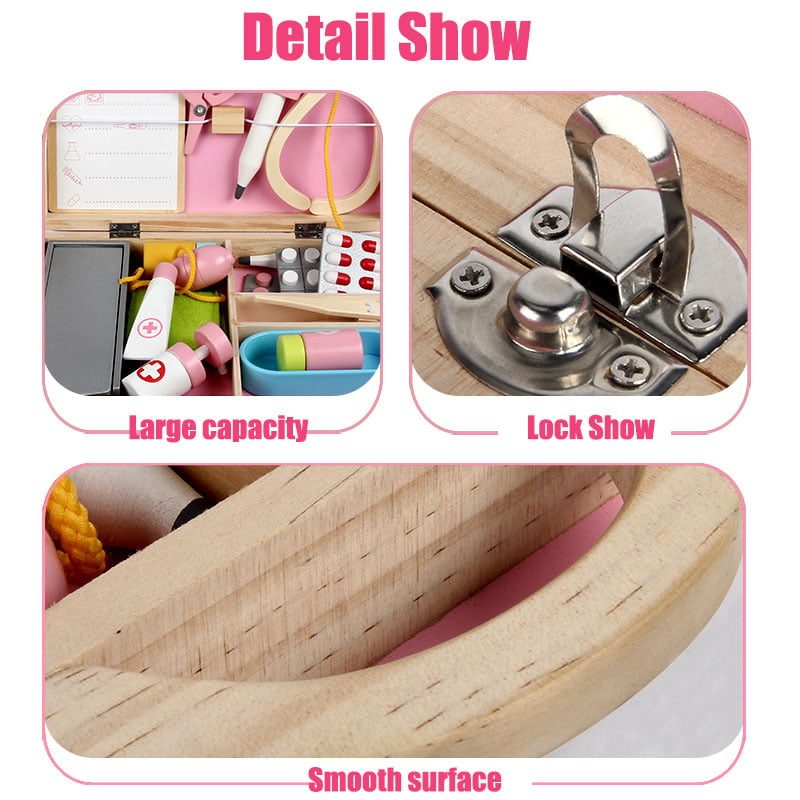 Designul instrumentarului medical de jucarie este cat se poate de realist, si in comparatie cu modelele de truse de doctor de jucarie din material plastic, acest set este durabil, putand fi folosit de nenumarate ori.