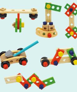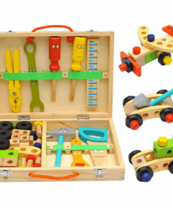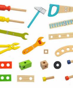 Banc de scule copii din lemn este o jucarie distractiva, o jucarie de rol indragita de copii si reprezinta un set care contine unelte si accesorii din lemn care permite copilului sa imite activitatile efectuate de adulti.