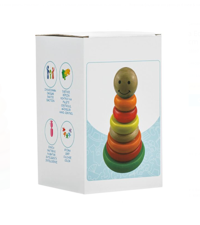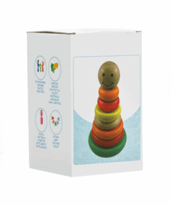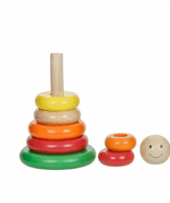 De ce o sa va placa: sortarea si stivuirea inelelor pe turnul de stivuire dezvolta coordonarea mana-ochi, abilitatile motorii fine si rezolvarea problemelor. Copiii afla devreme despre rationamentul spatial si recunoasterea culorilor, dar cel mai important: este distractiv! Fiecare piesa este din lemn natural, slefuita neted si colorata.