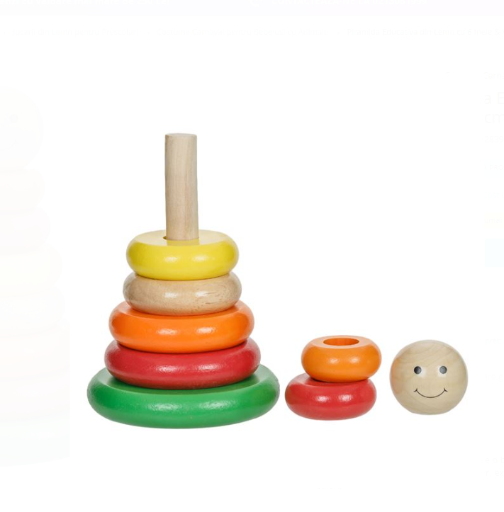 Prima pagină > Jucarii Copii > Jucarii bebelusi > Cuburi din Lemn > Turn Montessori de sortare si stivuire, 20 cm