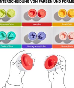 Copilul poate explora ouăle senzoriale, potrivindu-le corect în funcție de formă și culoare, apoi le poate depozita în baza turnului pentru a exersa concepte de ordine și organizare. Stivuirea inelelor colorate ajută la înțelegerea mărimii și succesiunii, în timp ce texturile variate stimulează percepția tactilă.