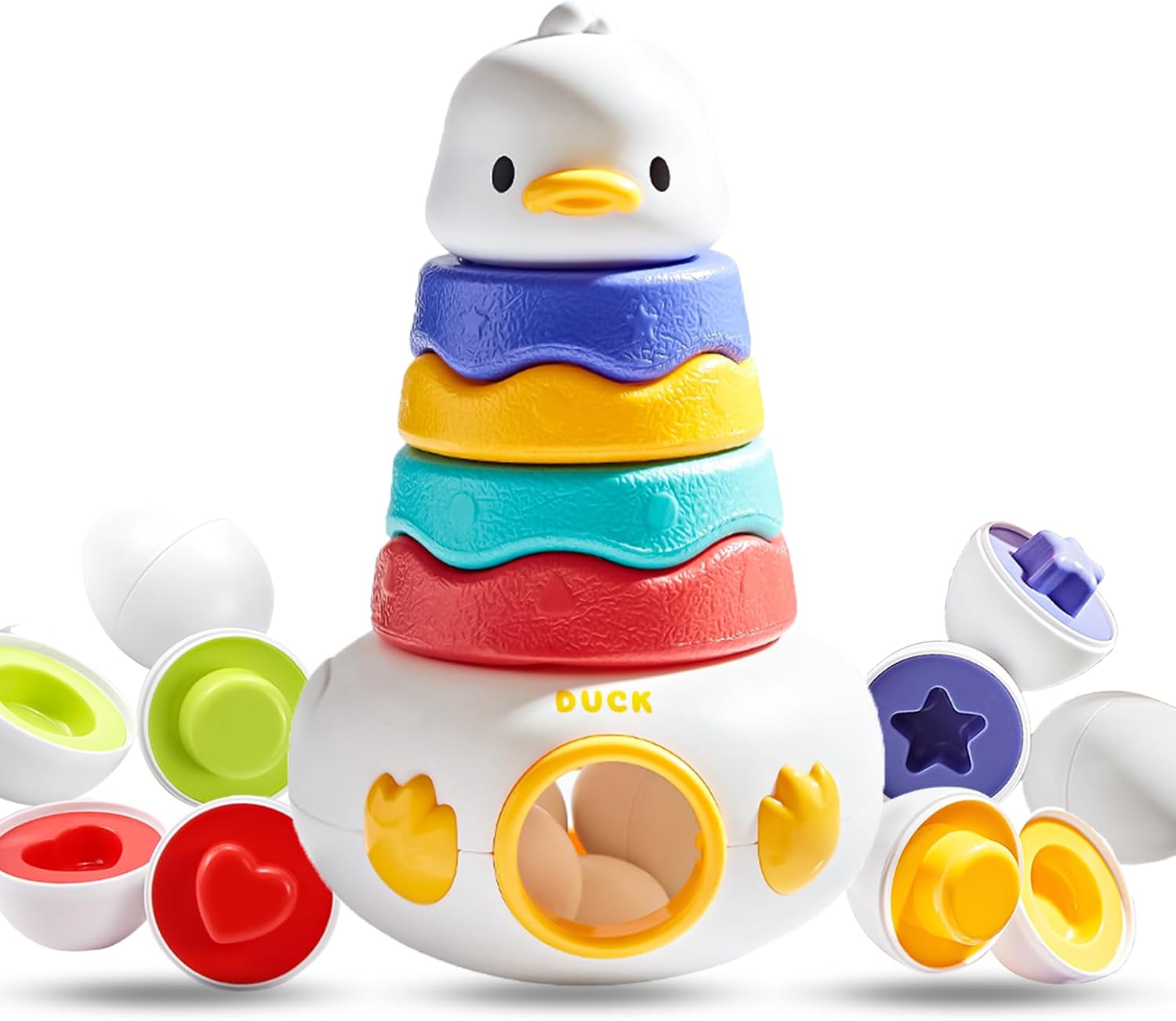 Sprijină gândirea logică și rezolvarea de probleme prin potrivirea ouălor și stivuirea inelelor.