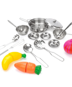 Cu ajutorul acestui joc – set ustensile bucatarie – copiii pot realiza jocuri de rol, isi pot imagina cum se gateste si serveste masa si vor dialoga, imbogatindu-si vocabularul si creativitatea.