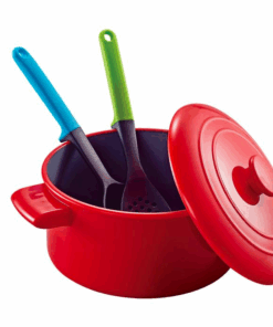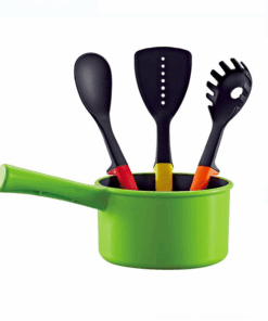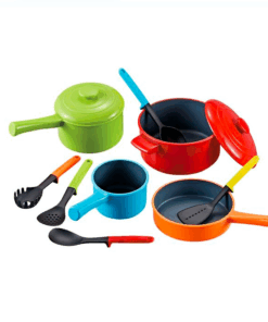 Set de bucatarie format din oala, tigaie, cratita, linguri si capace.